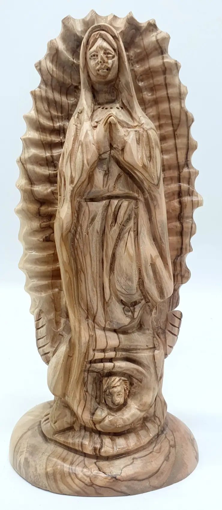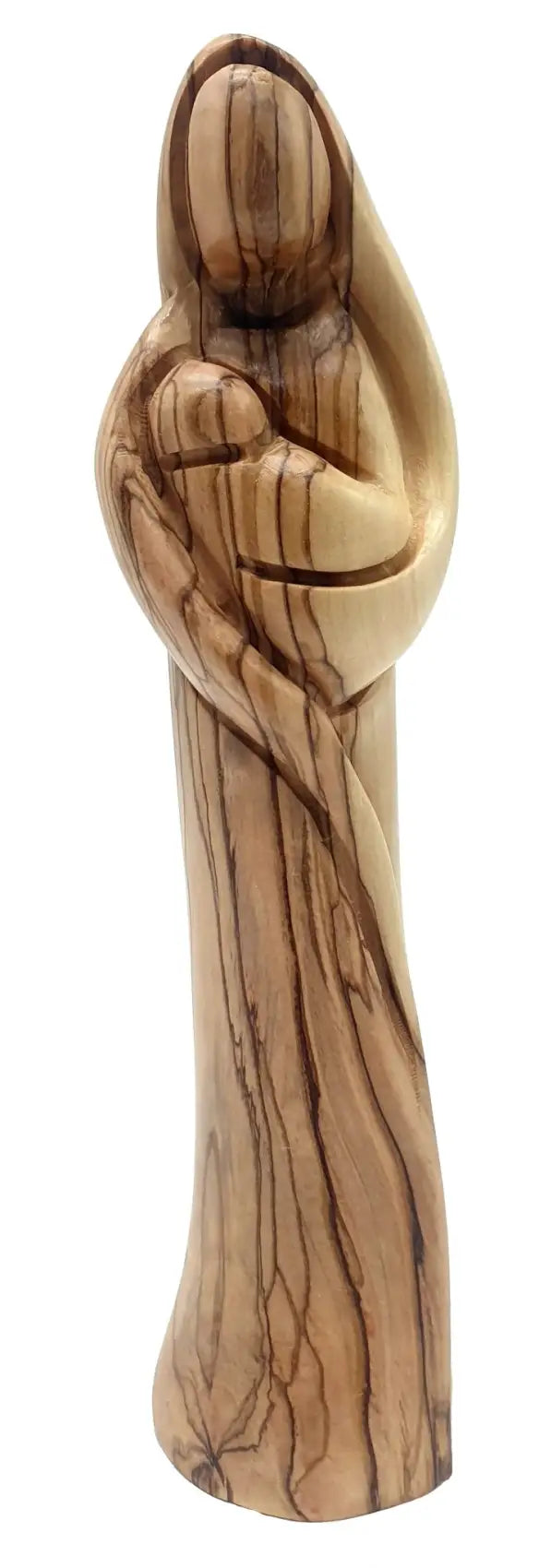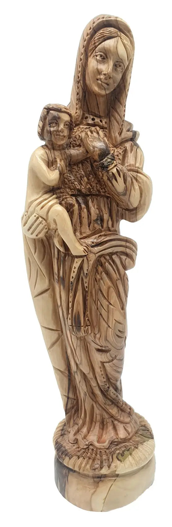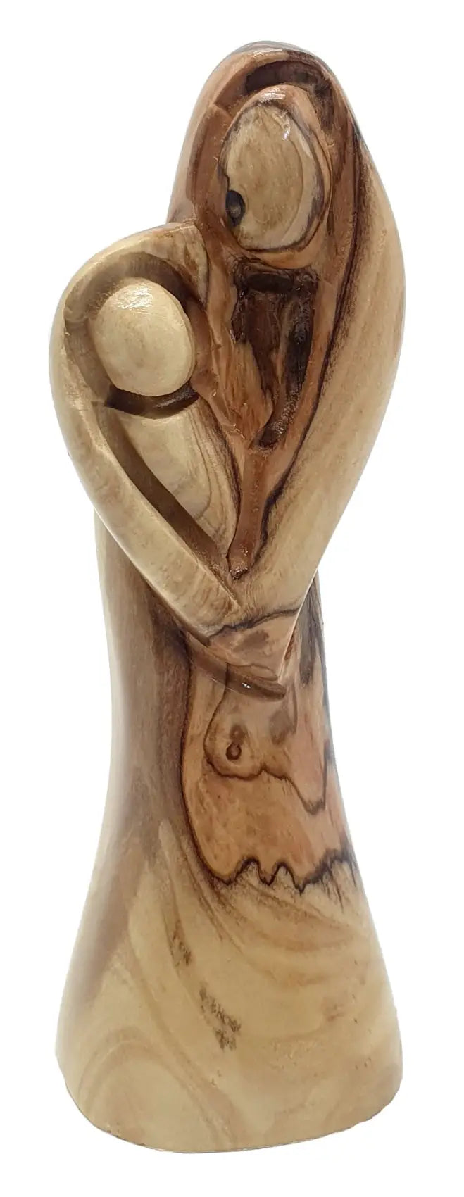 Mary The Most Believed of all Women in the Christian and Catholic Faith, Ideal Gift for everyone, Our Mary Olive Wood Carvings are single pieces of wood depiciting the Virgin Mary sitting and holding baby Jesus in her Arms, with all your purchases you will receive Zuluf Bethlehem Olive Wood Factory Certificate of authenticity.