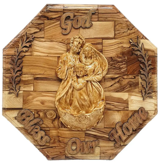 Handcrafted Olive Wood and gypsum Wall Hanging God Bless Our Home Plaque