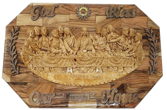 Large Olive Wood Wall Hanging Plaque Last Supper God Bless Our Home