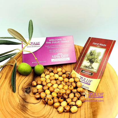 Olive Wood Beads Polished and Figured - Best Quality From Zuluf Bethlehem Olive Wood Factory Limited Edition - Made of Bethlehem and Jerusalem olive Wood Trees.