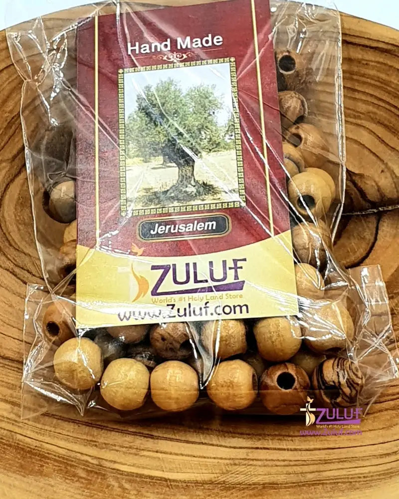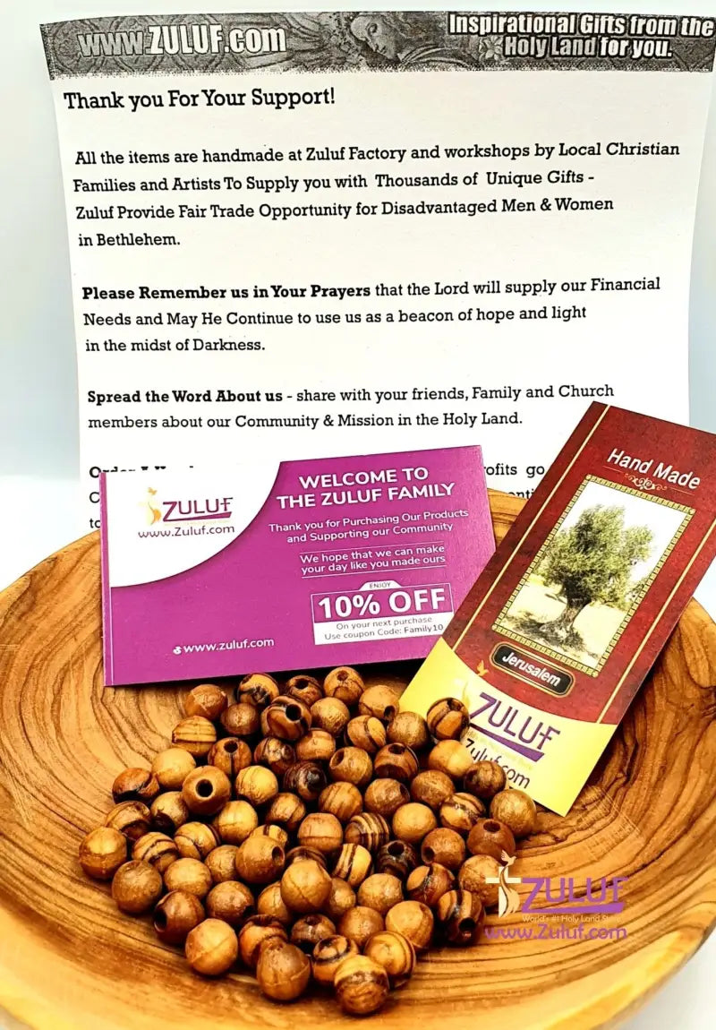 Olive Wood Beads Polished and Figured - Best Quality From Zuluf Bethlehem Olive Wood Factory Limited Edition - Made of Bethlehem and Jerusalem olive Wood Trees.