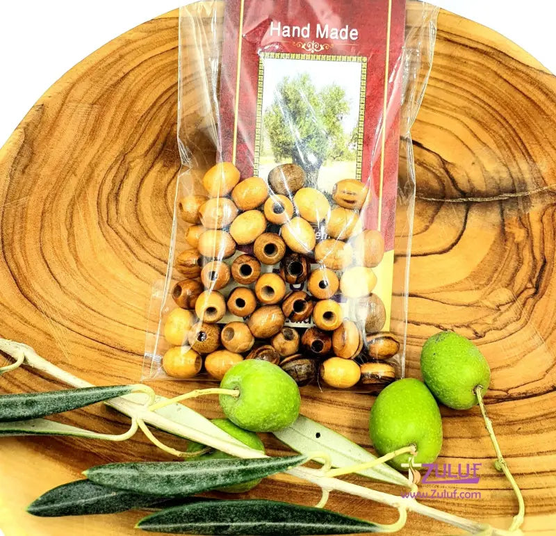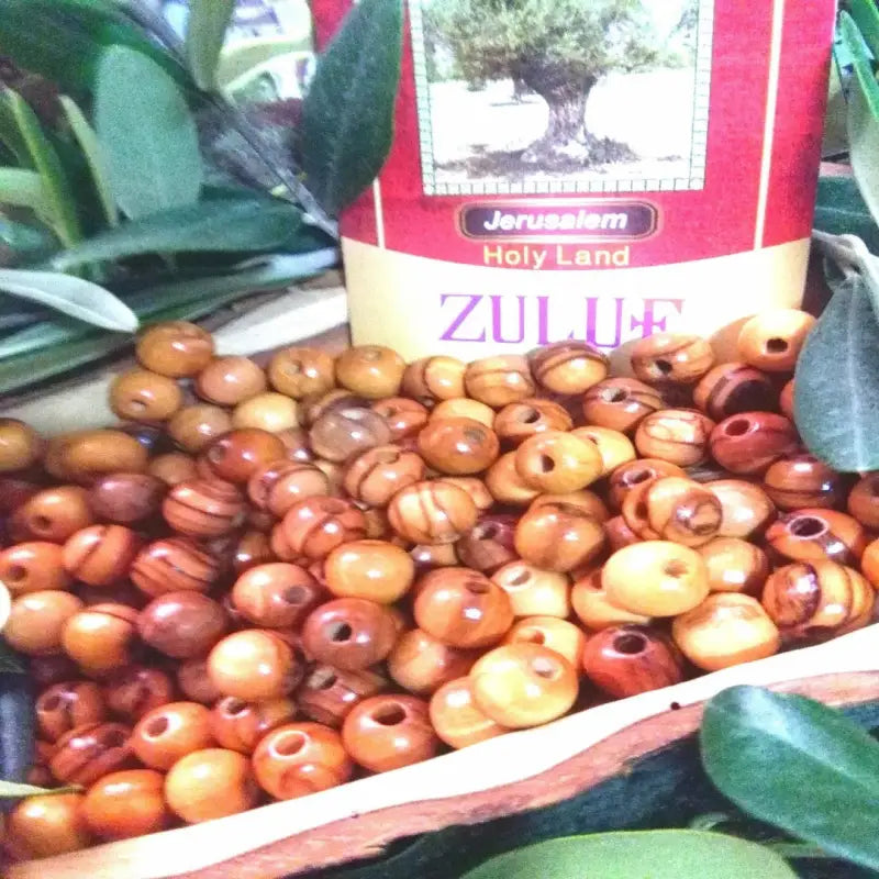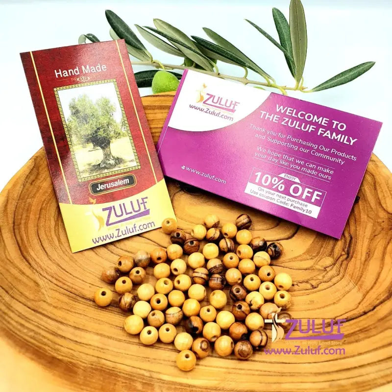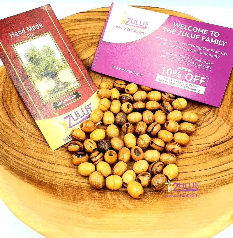 Olive Wood Beads Polished and Figured - Best Quality From Zuluf Bethlehem Olive Wood Factory Limited Edition - Made of Bethlehem and Jerusalem olive Wood Trees.