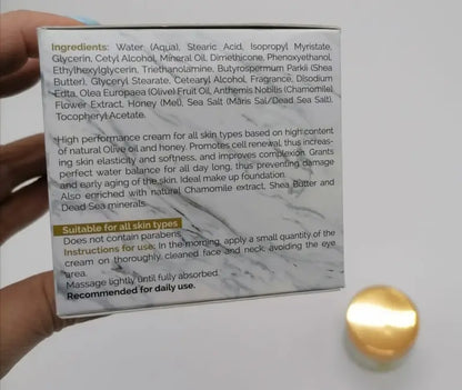 High performance cream for all skin types based on high content of natural Olive oil and Honey.