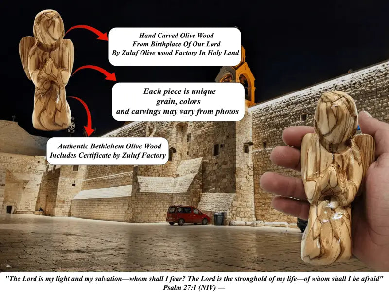Faceless Olive Wood Angel Hand Carved in Bethlehem 4.8 Inch