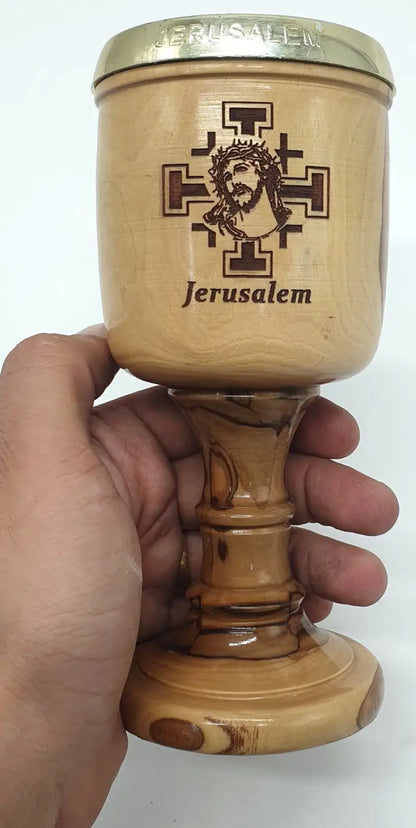 Olive Wood Chalice from the Holy Land with Golden Insert