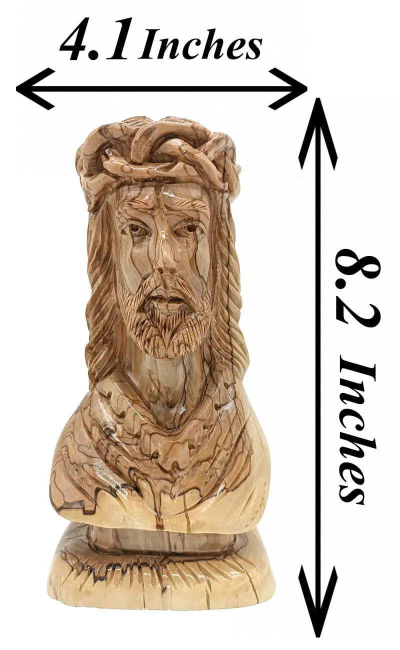 Hand-Carved Jesus Christ Bust – Exquisite Handmade Olive Wood Sculpture | High-Quality Christian Art (8.2x4.1x2.9") .