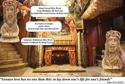 Bring the sacred presence of Jesus Christ into your home with this exquisite hand-carved bust . Order now and own a piece of Holy Land craftsmanship that will inspire generations to come .