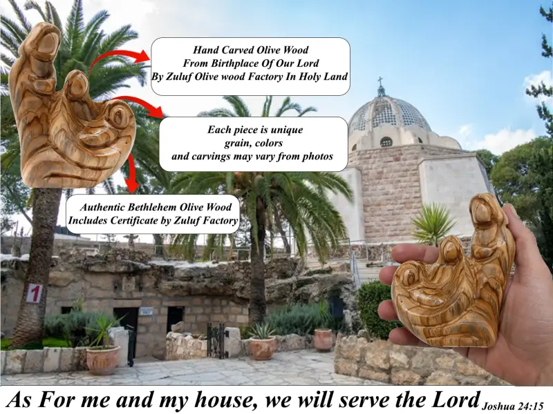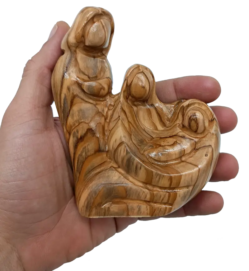 This hand crafted sculpture also makes a meaningful Christian gift for Christmas, housewarmings, baptisms, weddings, or any special occasion. Each piece is unique, bearing the natural variations of the sacred olive wood, making it a cherished heirloom for years to come .