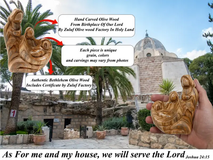 Embrace the spiritual heritage of Bethlehem with this exquisite hand carved Holy Family sculpture, a testament to faith, love, and artistry .
