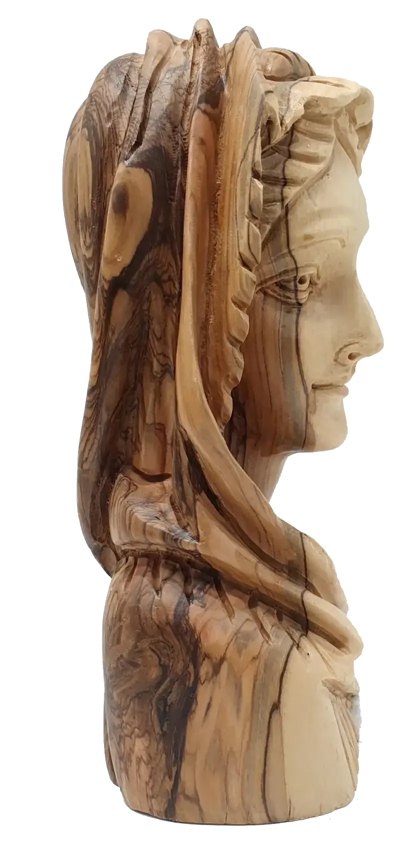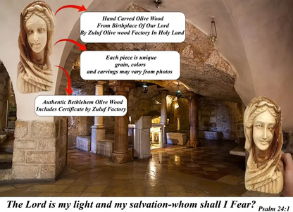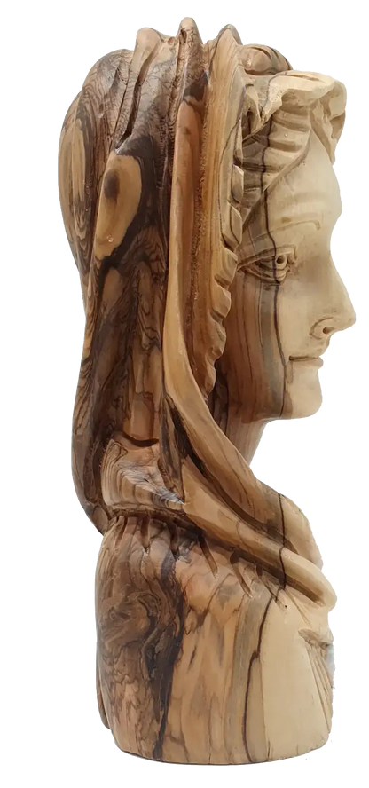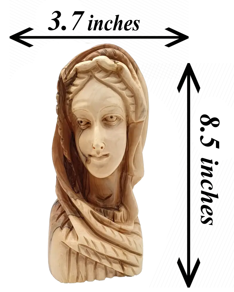 Hand-Carved Olive Wood Virgin Mary Head – Handmade in Bethlehem | Nice Religious Decor and Gift (8.5x3.7x3.9 inches)