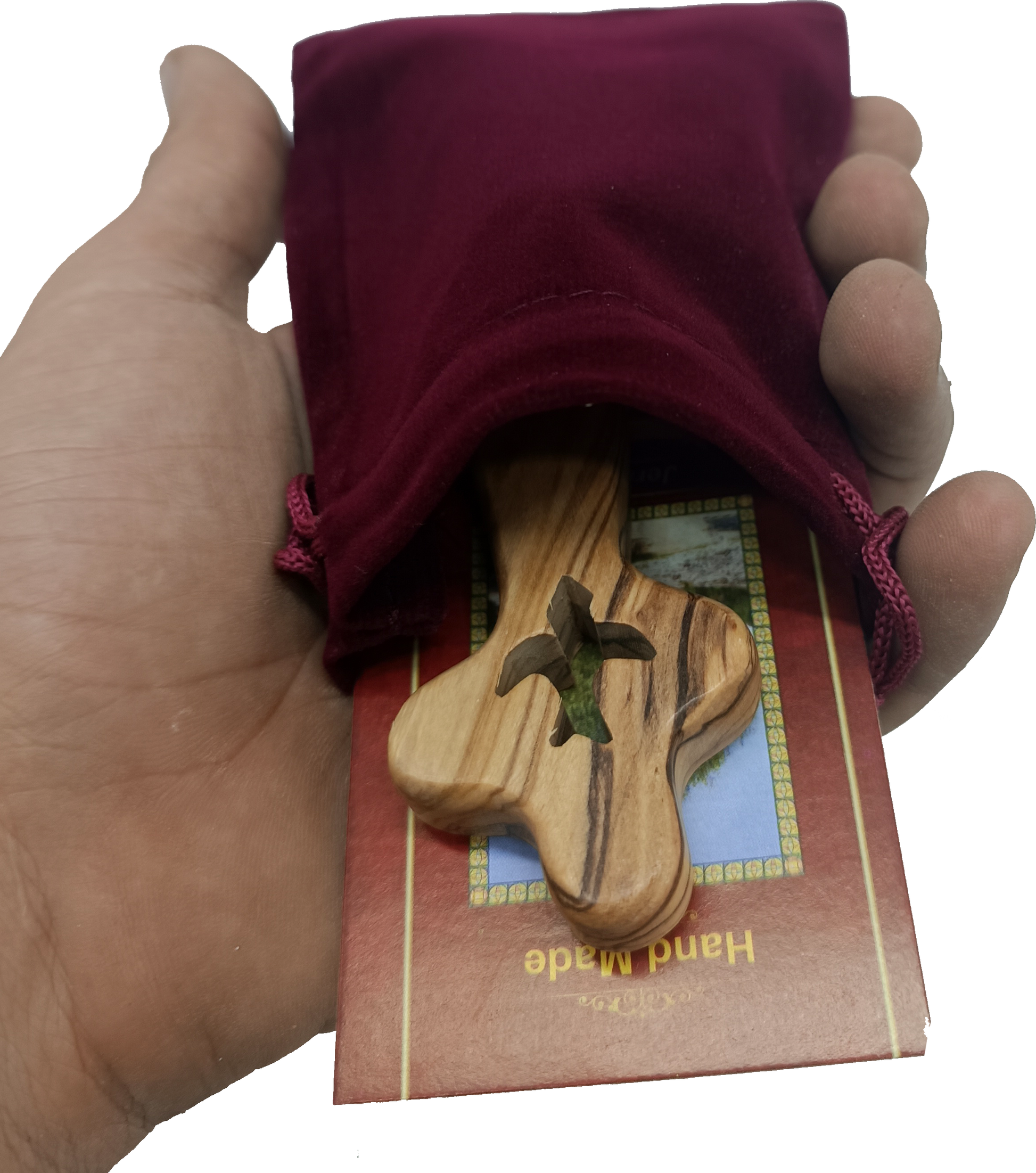 Hi, I'm Elias. I've been handling these crosses since I was a kid watching the carvers work, and I still pick one up every time a new batch comes in. The dove cut-out on this one is my favorite detail. It's delicate but the wood is strong, and that combination is harder to pull off than it looks. Every piece you order comes directly from our workshop, no warehouses in between. If you're looking for crosses hand carved from olive wood handcrafted comfort for sale, this is the real thing.