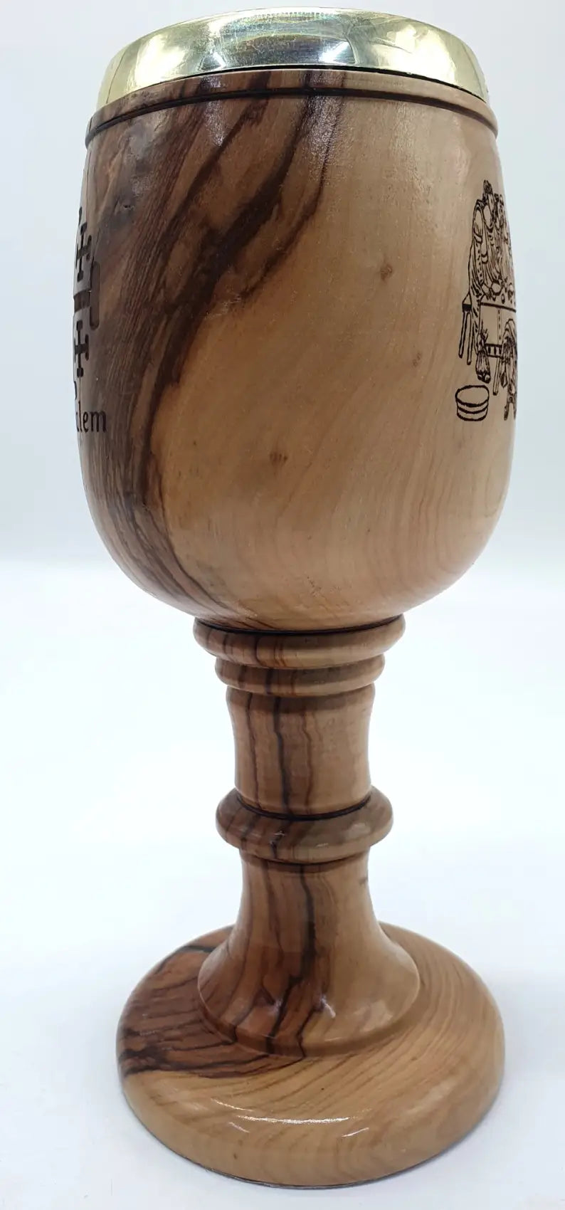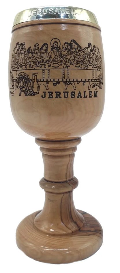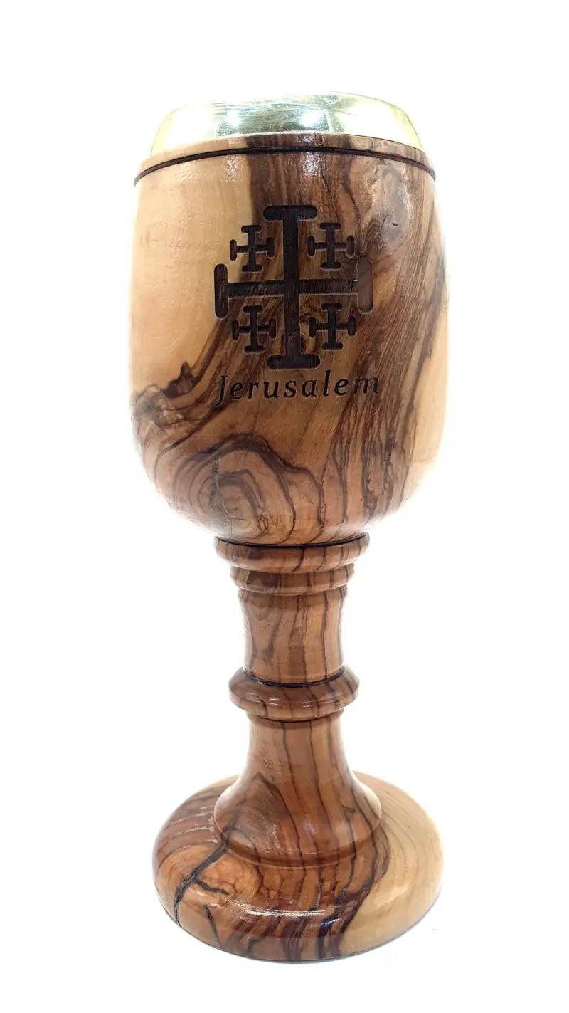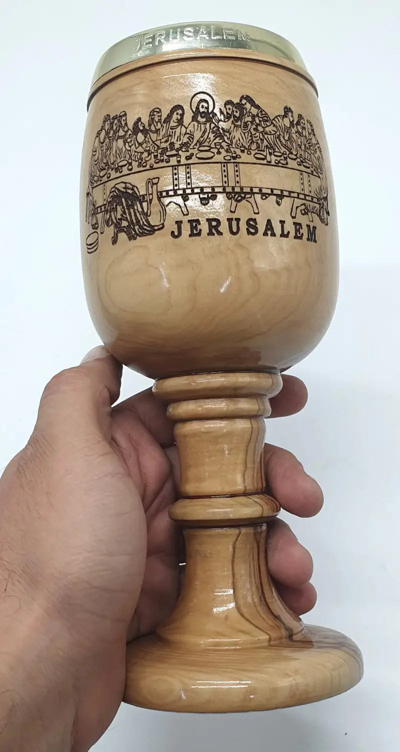 This Hand-Carved Olive Wood Communion Cup, crafted in the heart of Jerusalem, is a symbol of deep spiritual tradition and exquisite craftsmanship. Made from premium olive wood, this chalice serves as a meaningful piece for religious ceremonies or as a beautiful decor item for your home.