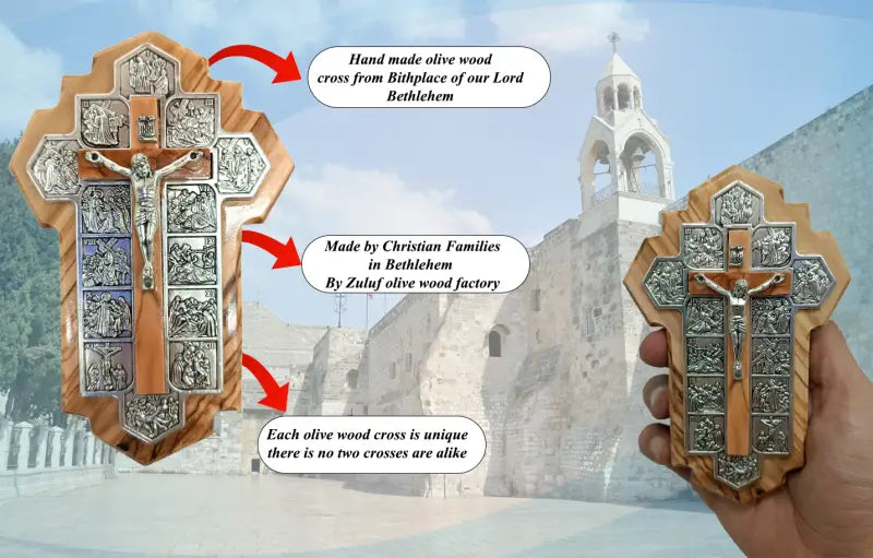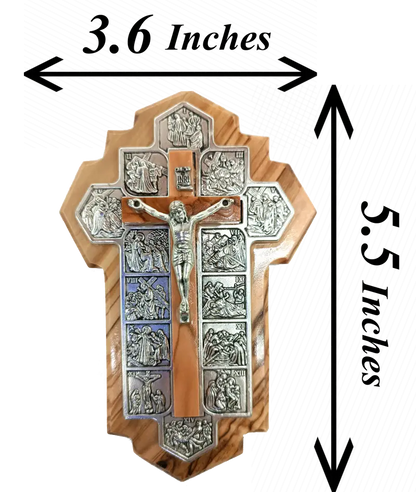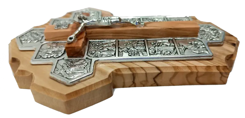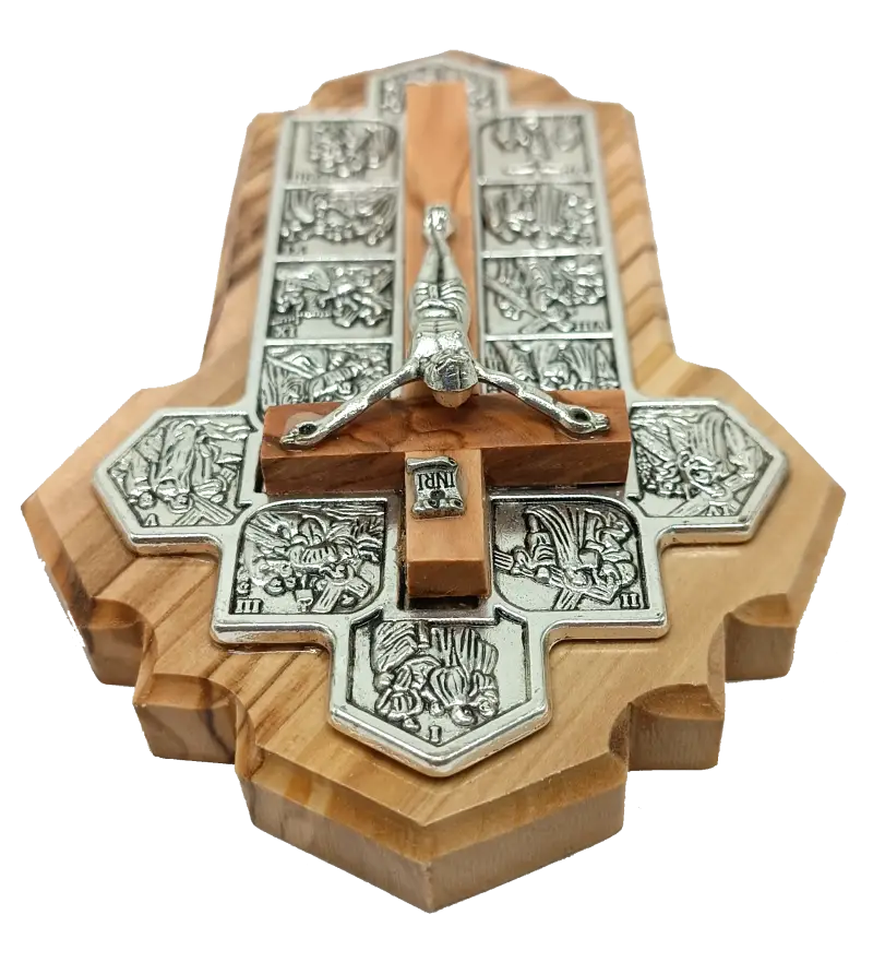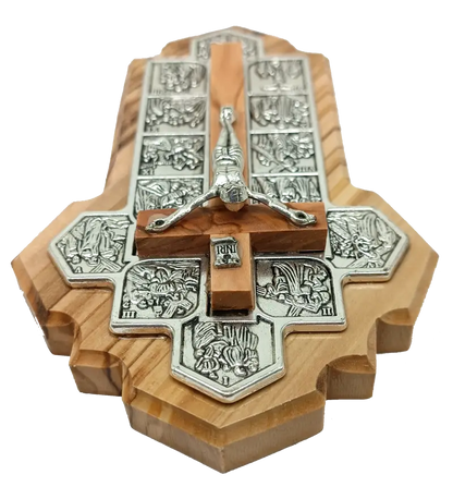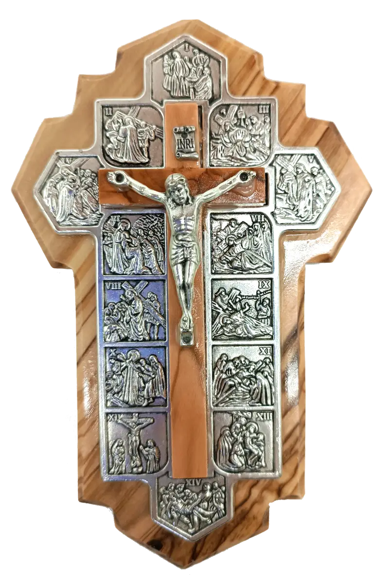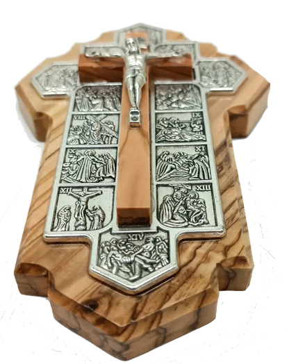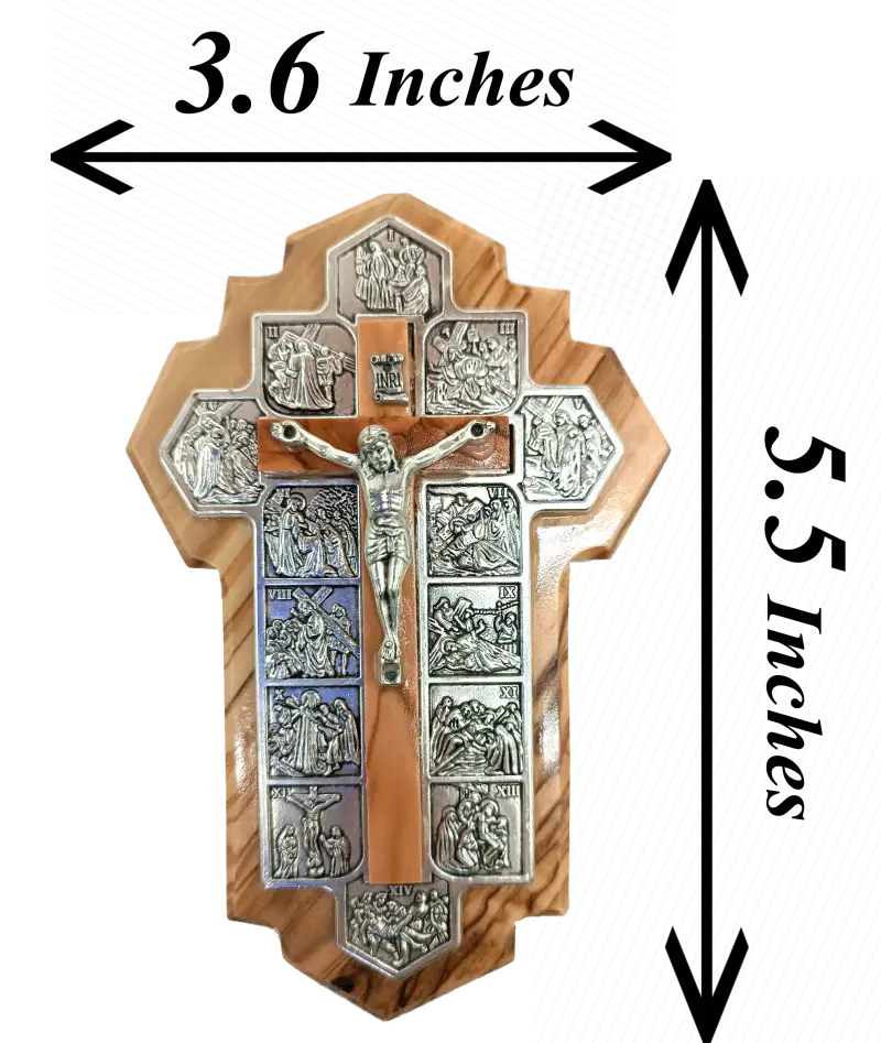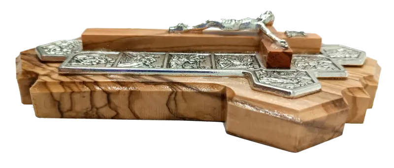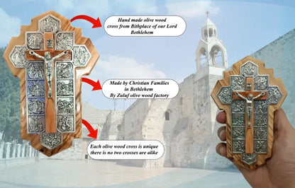 Handmade Olive Wood Jerusalem Cross with 14 Stations – Crafted in the Holy Land, A Meaningful Gift from Jerusalem