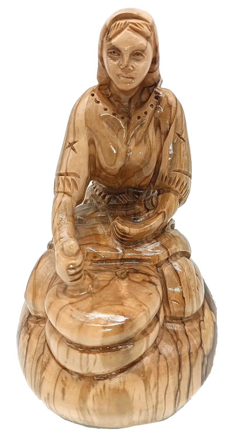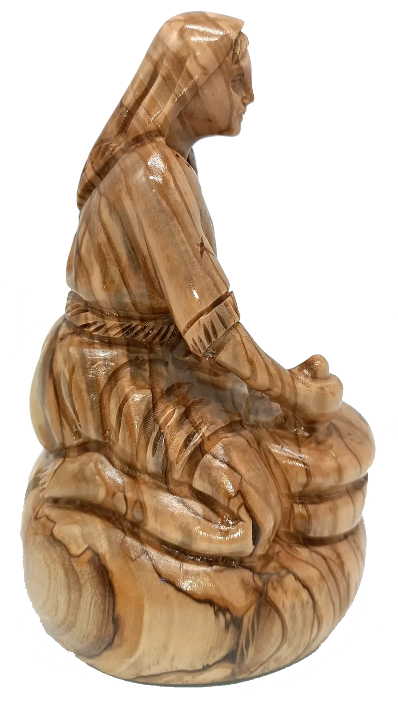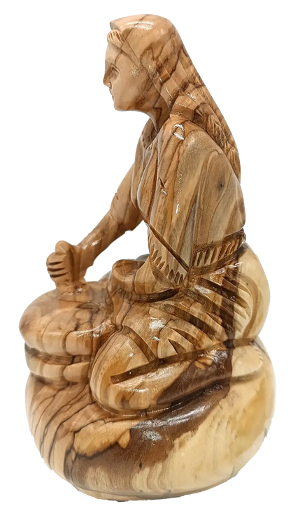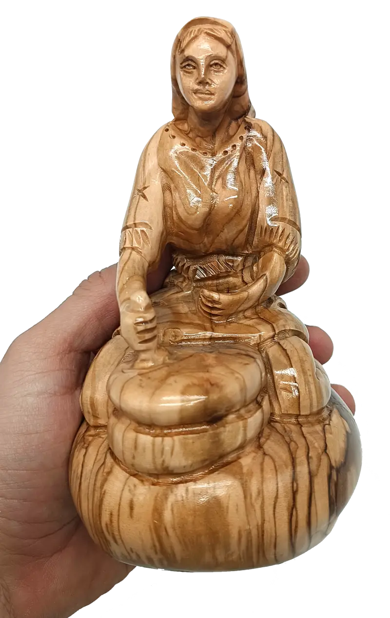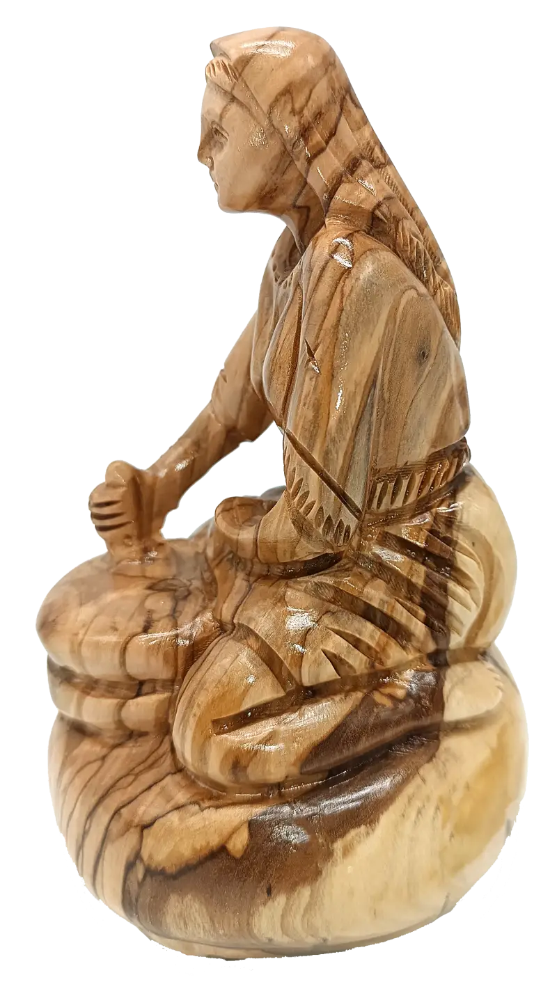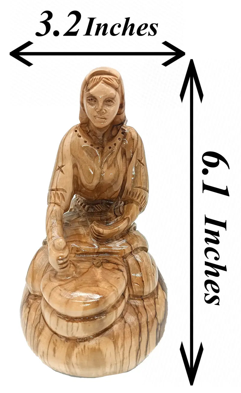 Handmade Olive Wood Village Woman Statue from the Holy Land