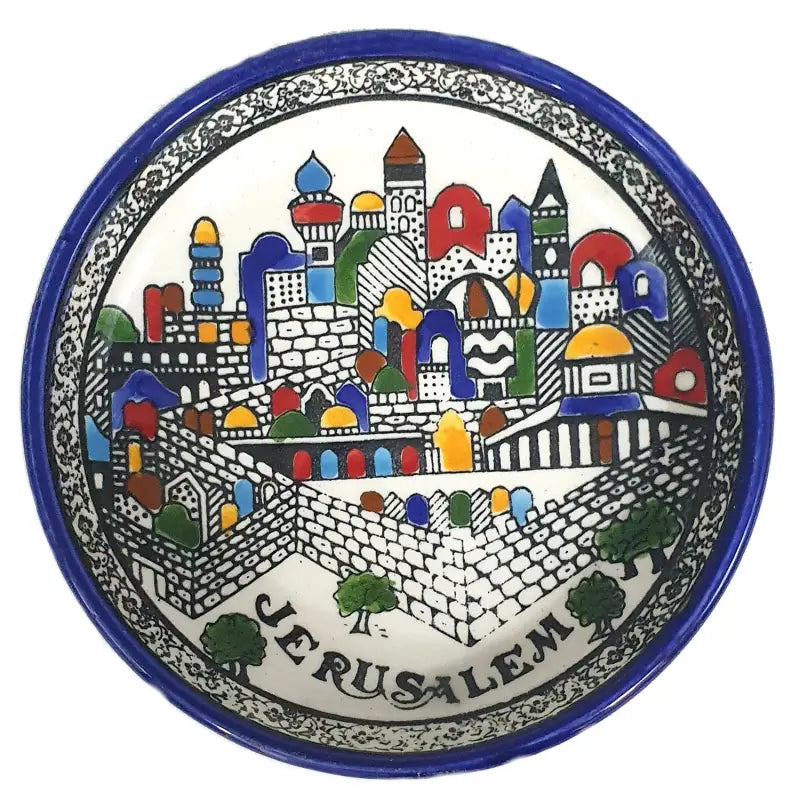 Handmade Traditional Ceramic Plate with Jerusalem Design