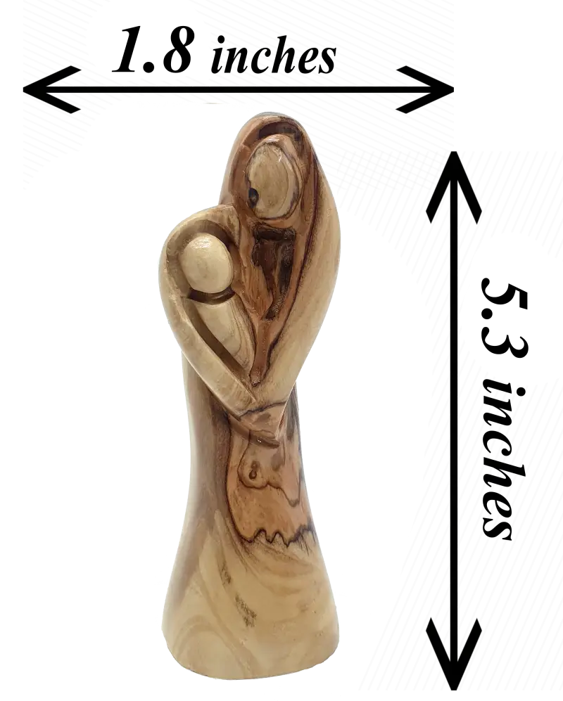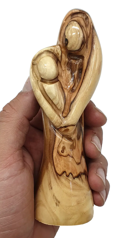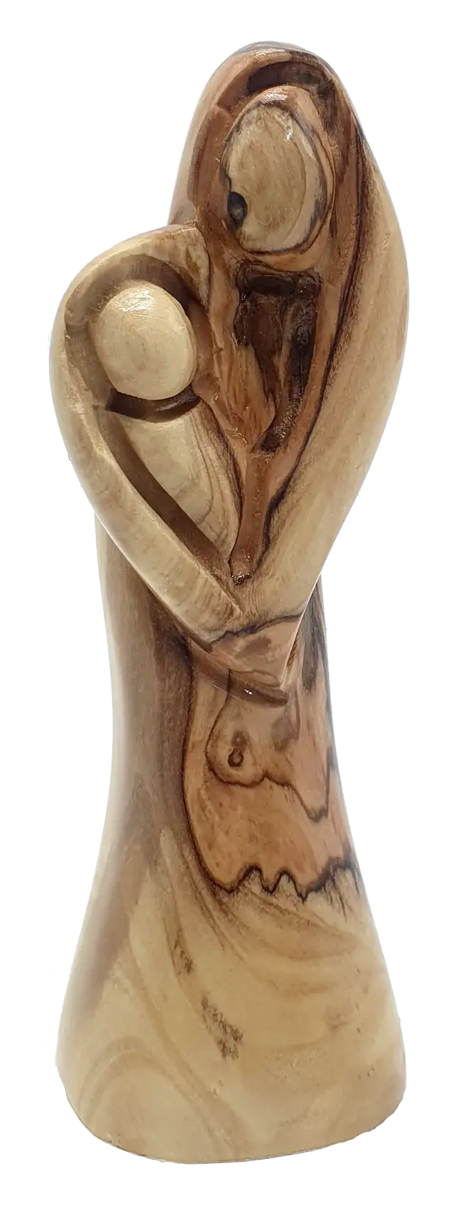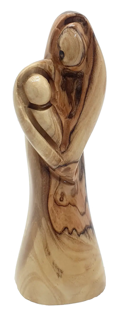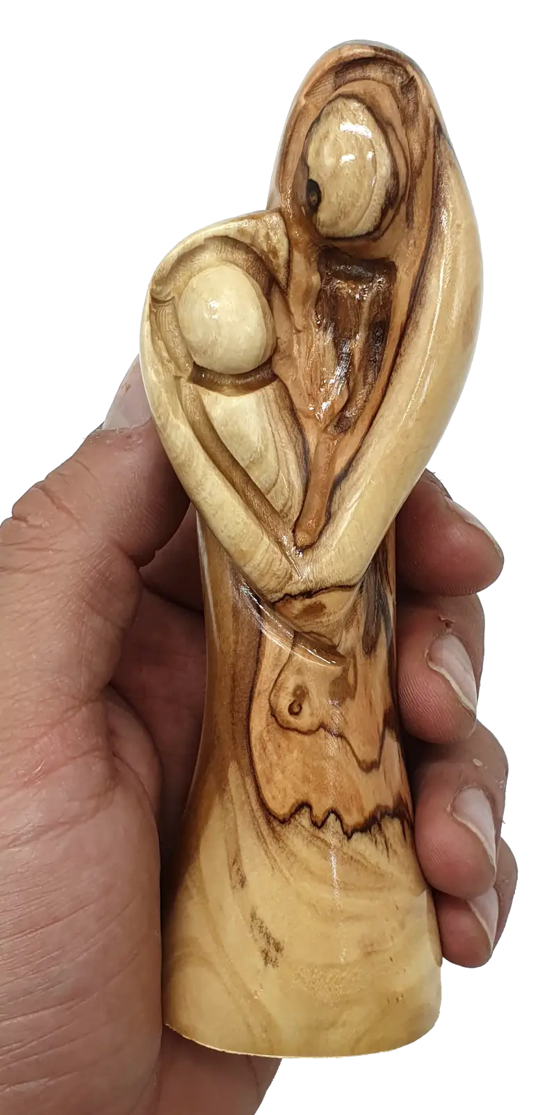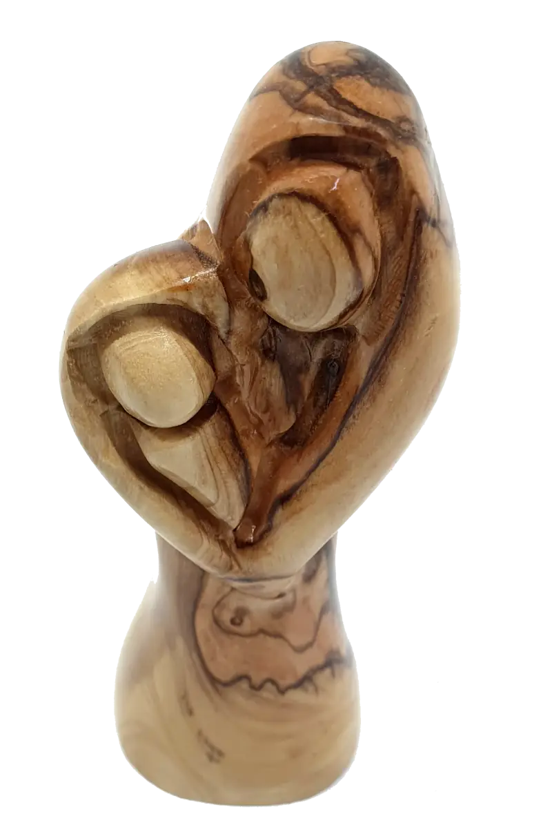 Heart Shaped olive wood statue of Mary holding Baby Jesus, hand made in Bethlehem,