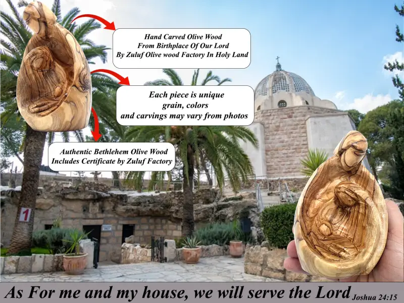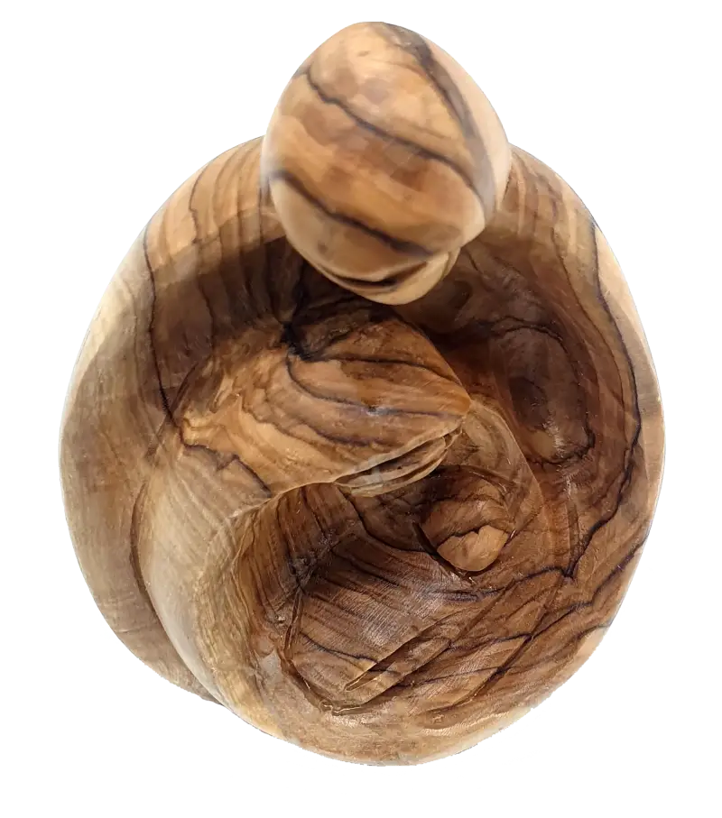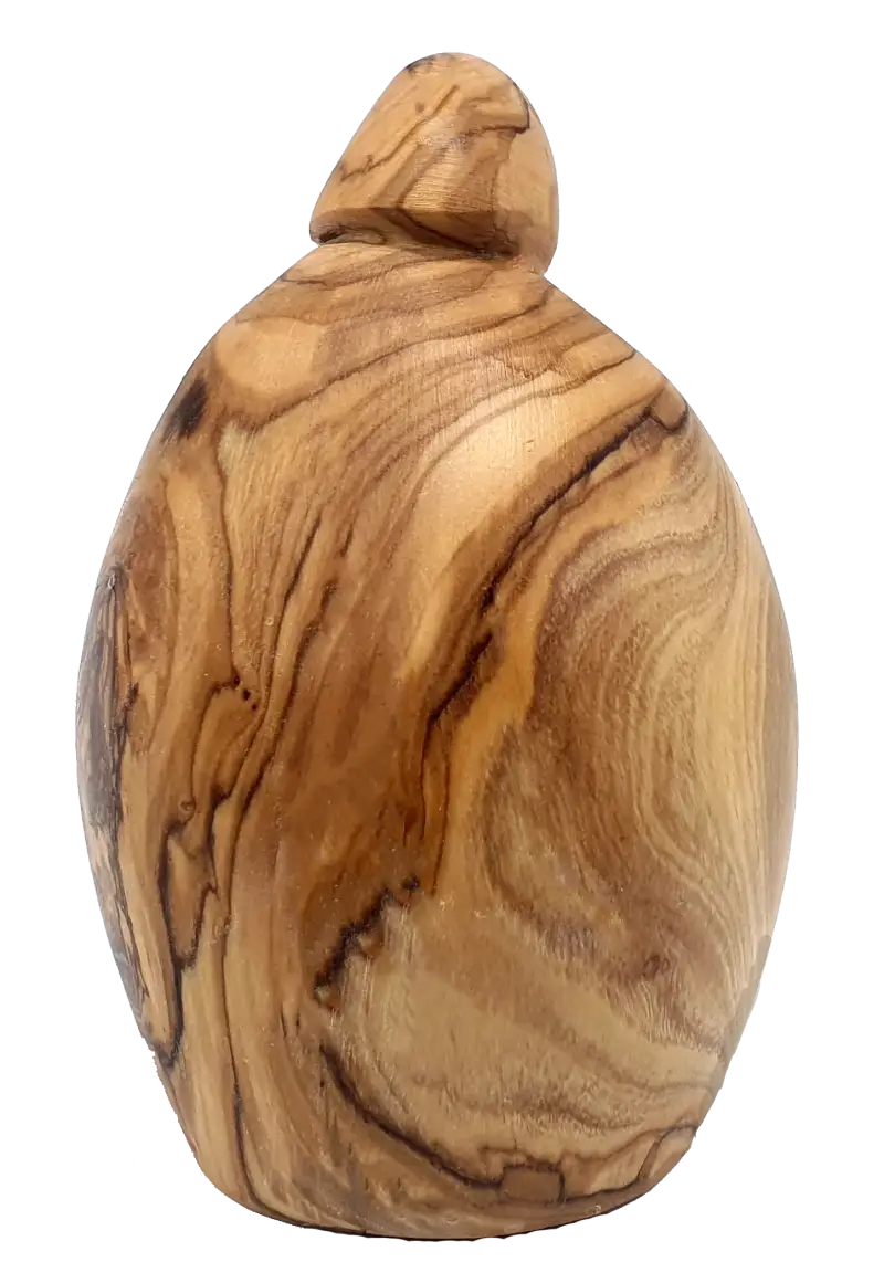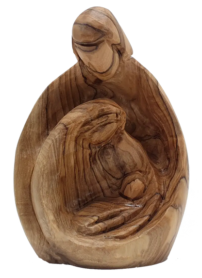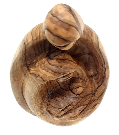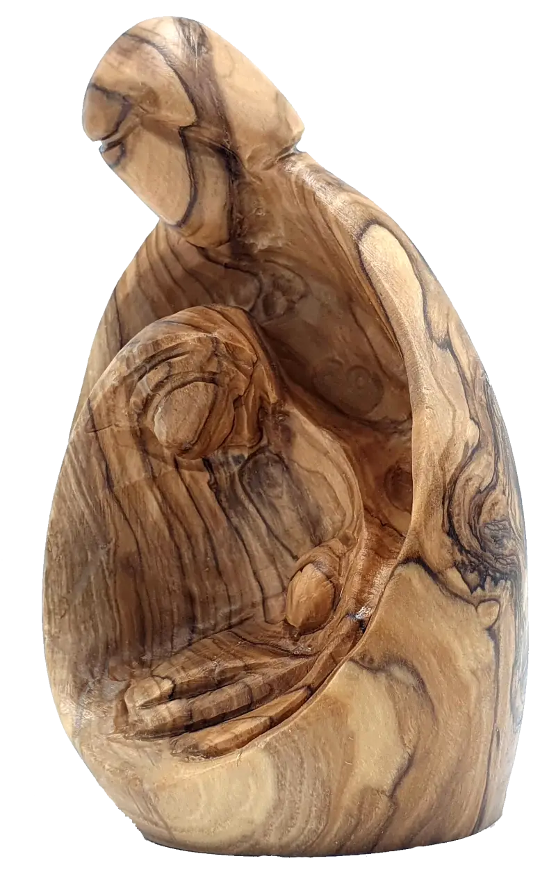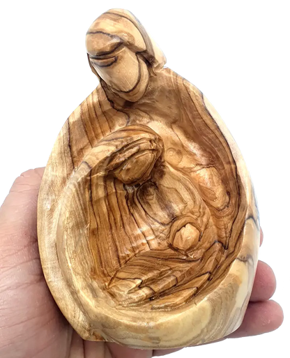 This little statue’s made by hand in Bethlehem using real olive wood. It shows Mary, Joseph, and baby Jesus, just standing together, quiet and simple. Nothing too polished. Just something honest and warm.