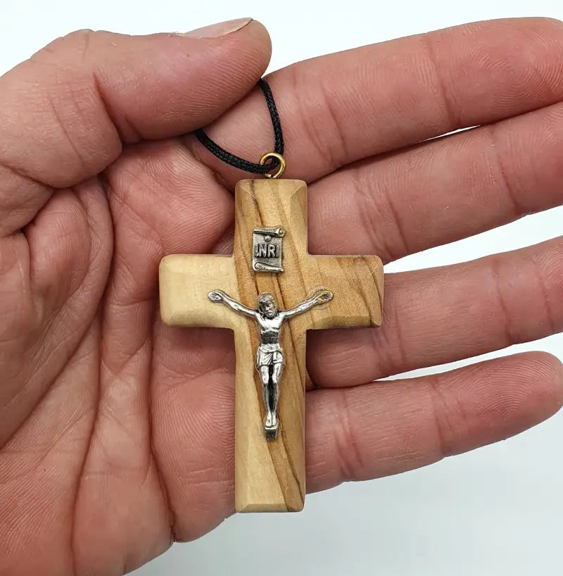 Description: Elevate your personal style and express your faith with our exquisite Olive Wood Cross Pendants featuring a stainless steel depiction of Jesus. Each pendant is meticulously crafted from premium olive wood, creating a harmonious blend of natural beauty and religious significance.