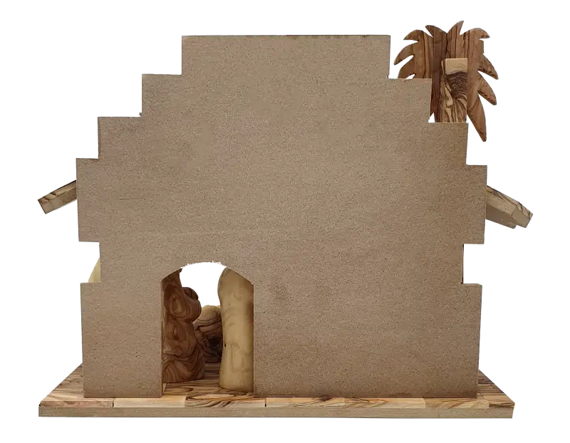 The stable's rich wooden backdrop, topped with a star and flanked by a sculpted palm tree, creates a peaceful, holy ambiance perfect for your holiday display . Each piece showcases the natural grains and textures unique to olive wood, making this a true collectible and a sacred keepsake for generations .