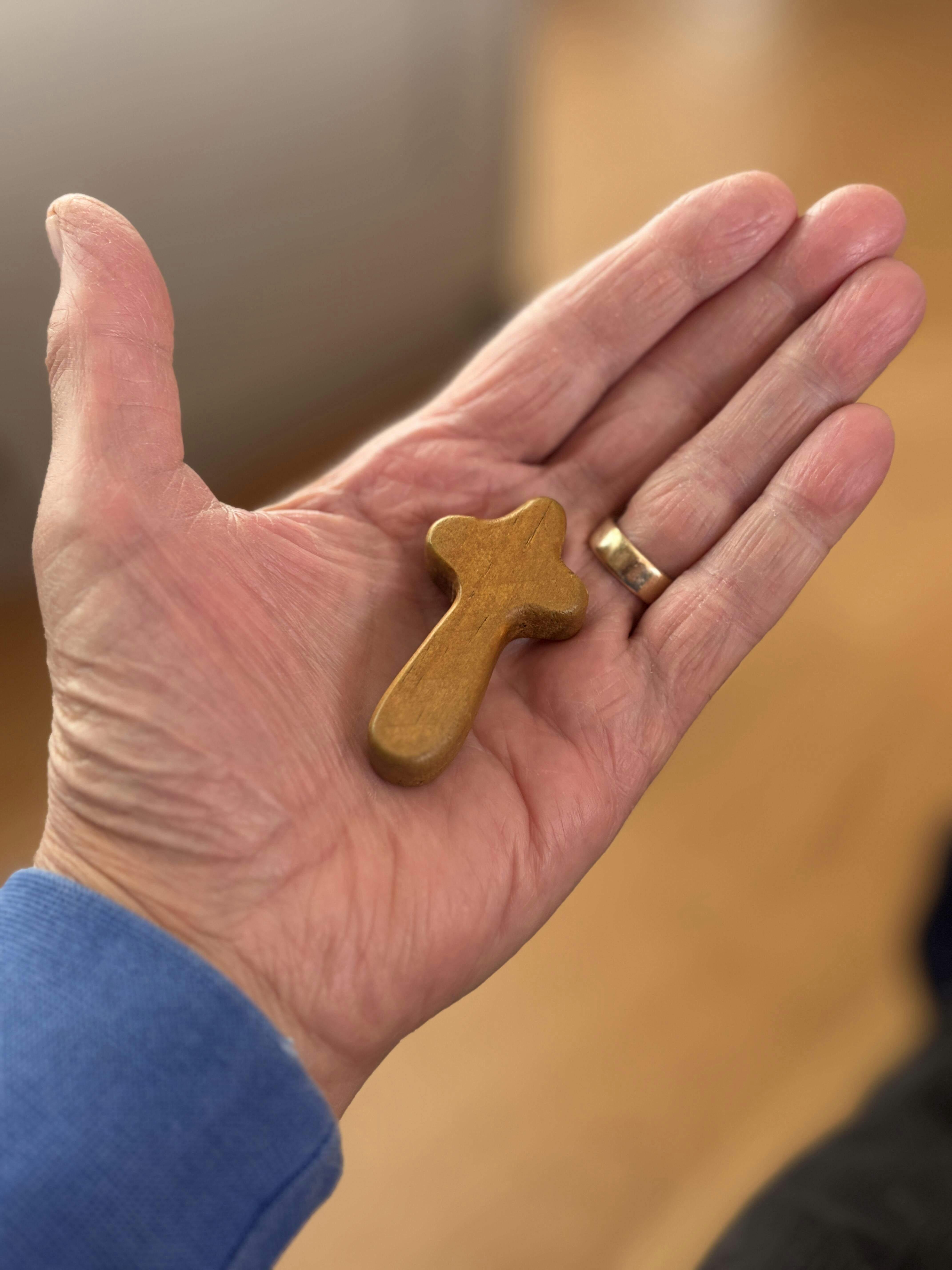 Olive Wood Holding Small hand held Cross Bethlehem Holy Land