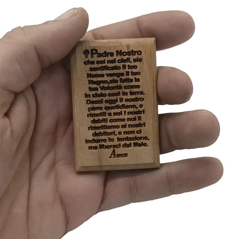 Olive Wood Magnet – Our Father Prayer in Spanish – Bethlehem Olive Wood