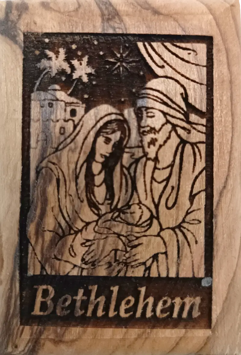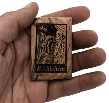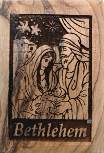 Olive Wood Magnet – Holy Family with “Bethlehem” Inscription