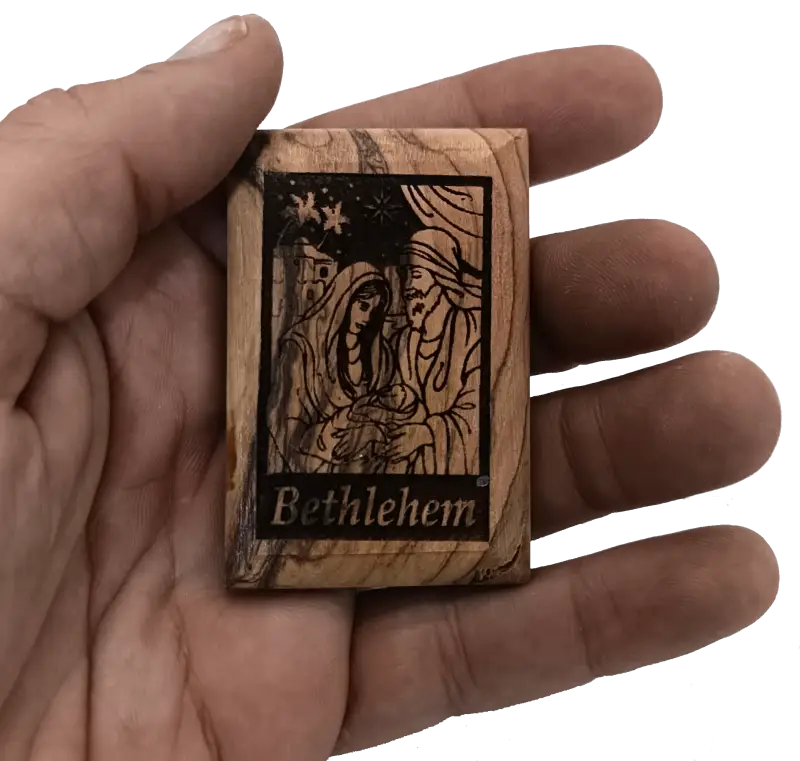 Crafted from real Bethlehem olive wood, the natural tones and patterns of the wood make every magnet slightly different and full of warmth. A beautiful reminder of faith, family, and the true meaning of Christmas perfect for home, fridge, or as a meaningful gift .