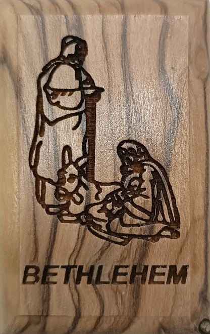 Olive Wood Magnet – Holy Family in Bethlehem Scene – Bethlehem Olive Wood