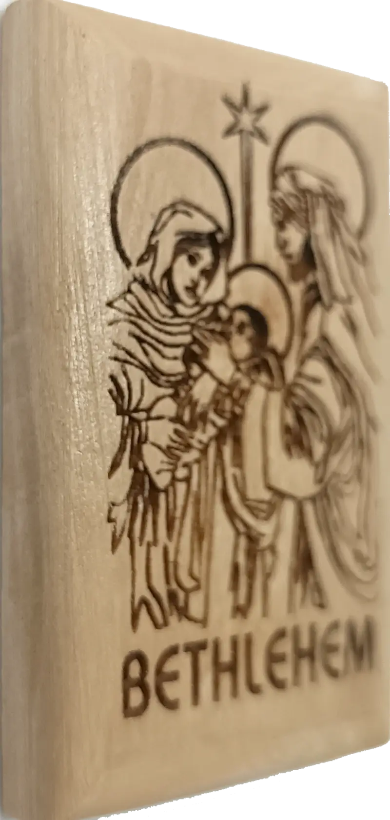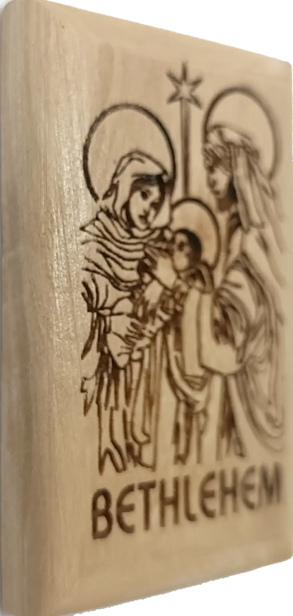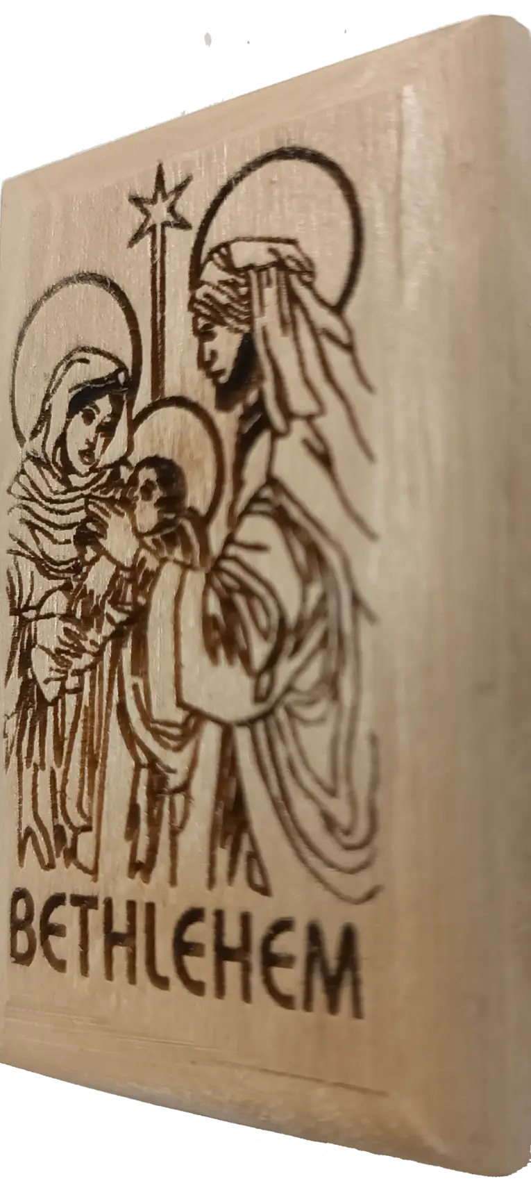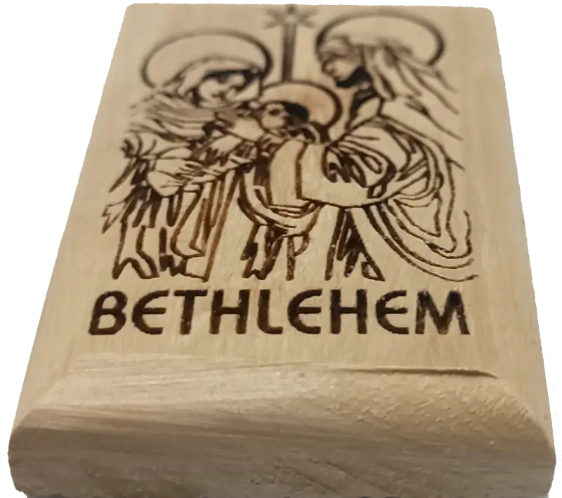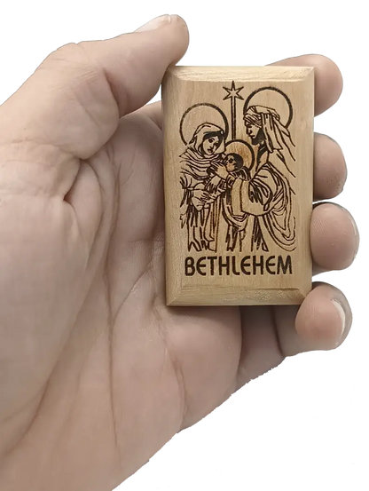 Engraved with “Bethlehem”, each magnet is handcrafted from authentic Bethlehem olive wood, showcasing natural wood grains that make every piece unique and filled with spiritual meaning .