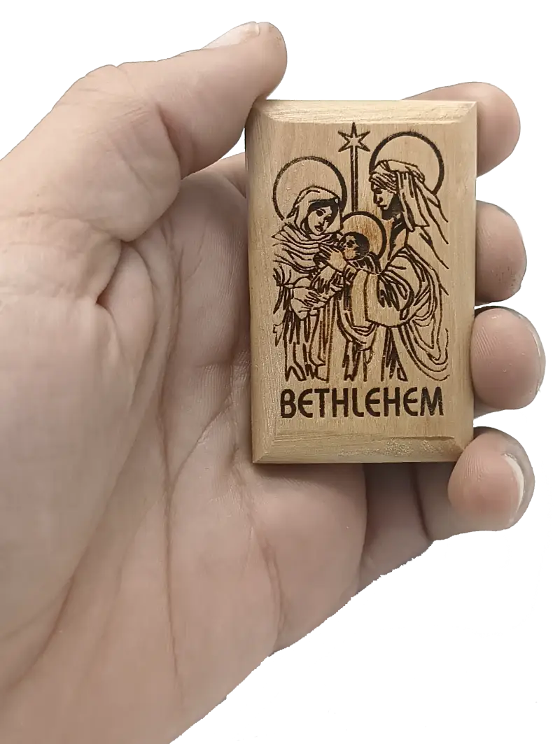 Olive Wood Magnet – Holy Family: Mary, Joseph, and Baby Jesus – Bethlehem Olive Wood