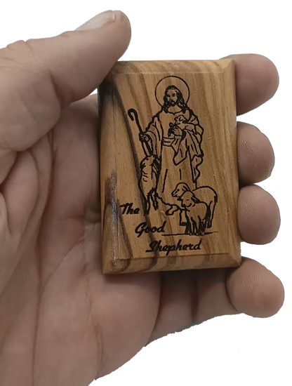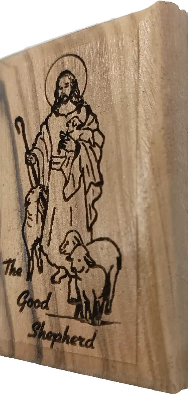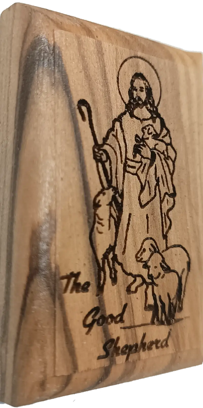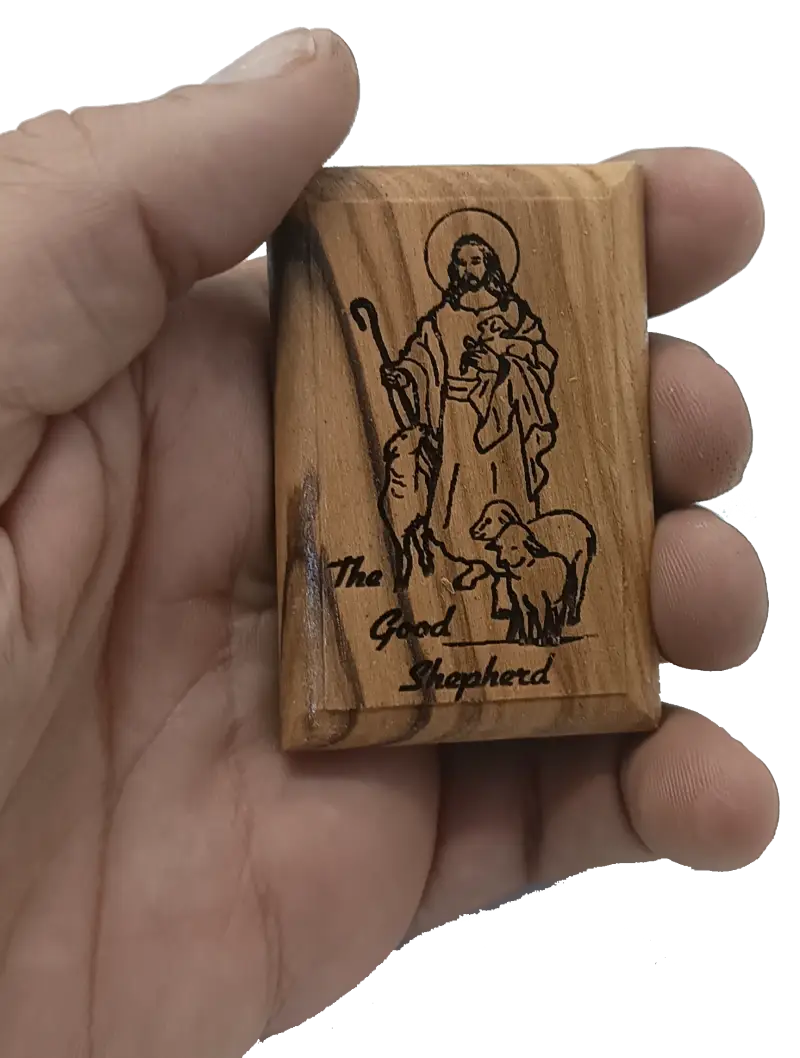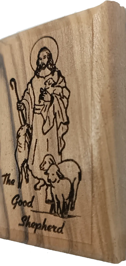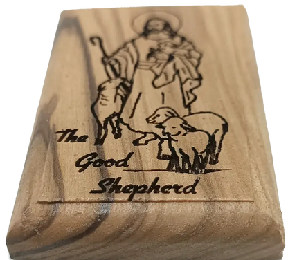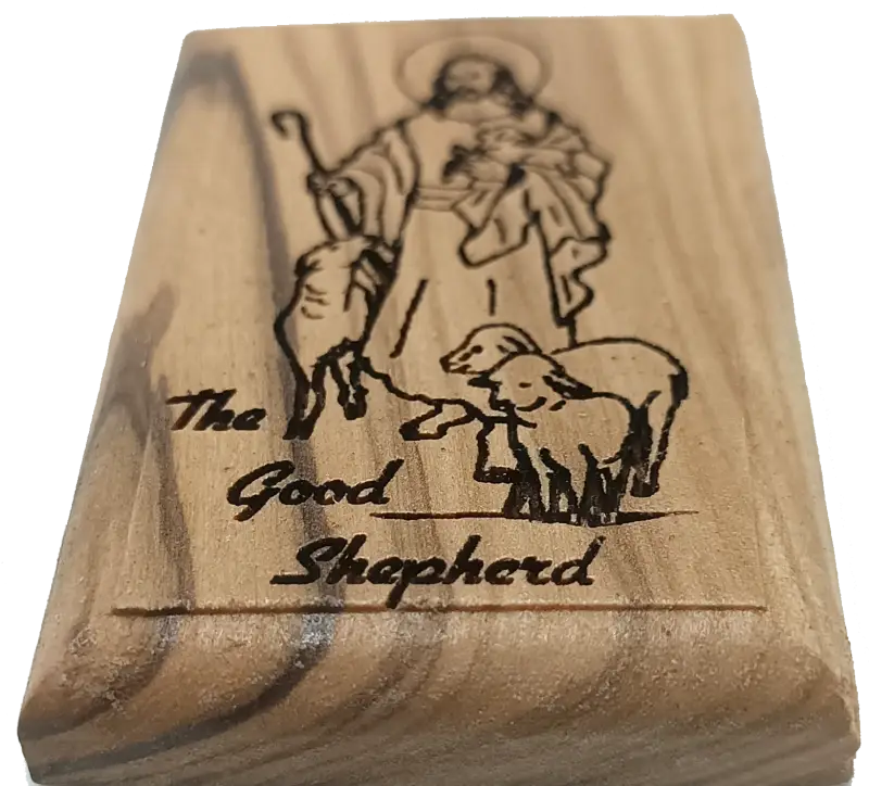 Olive Wood Magnet – Jesus the Good Shepherd – Bethlehem Engraving
