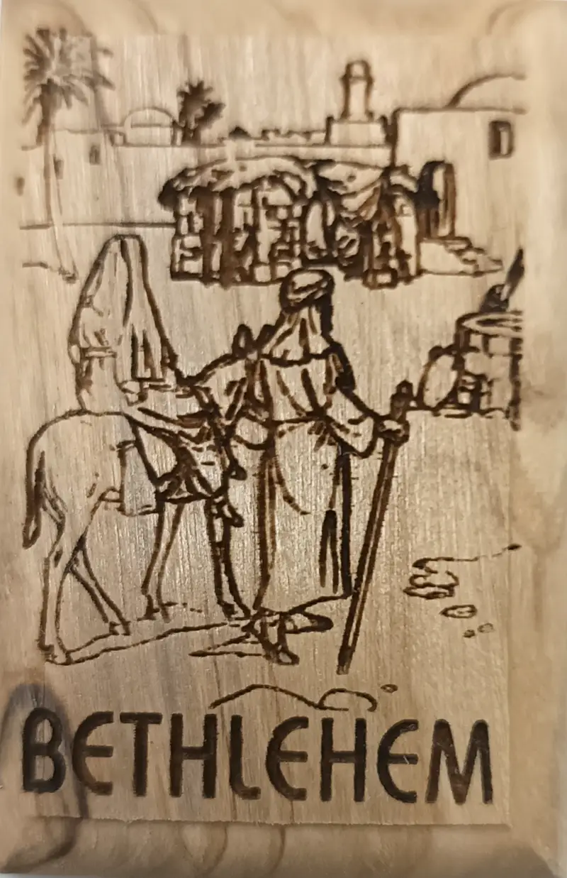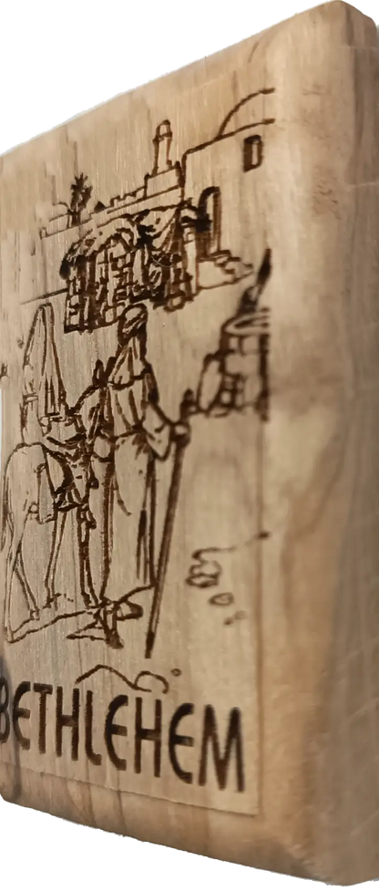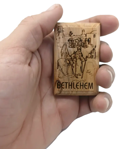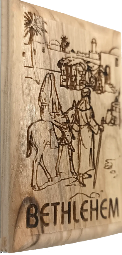 Olive Wood Magnet – Journey to Bethlehem Scene