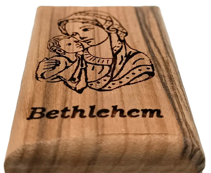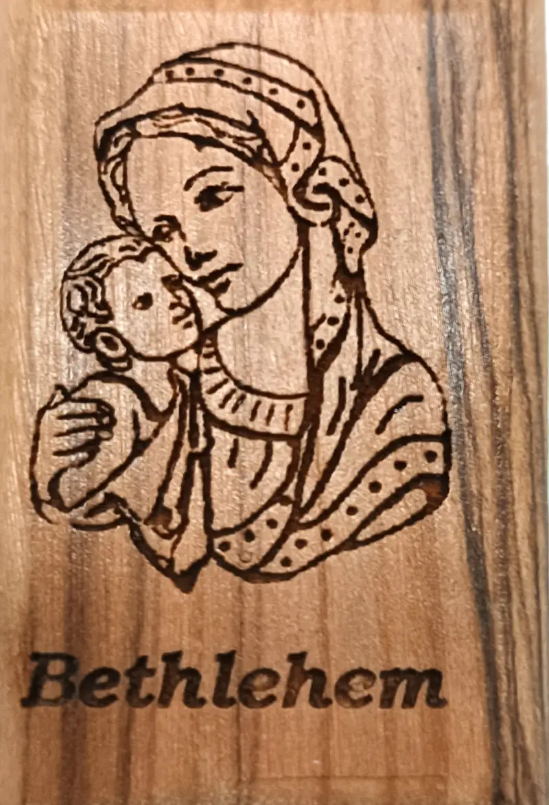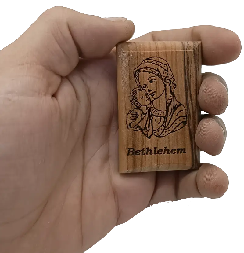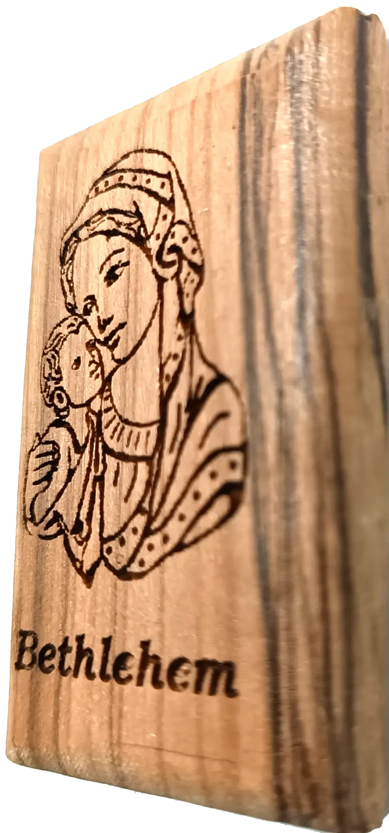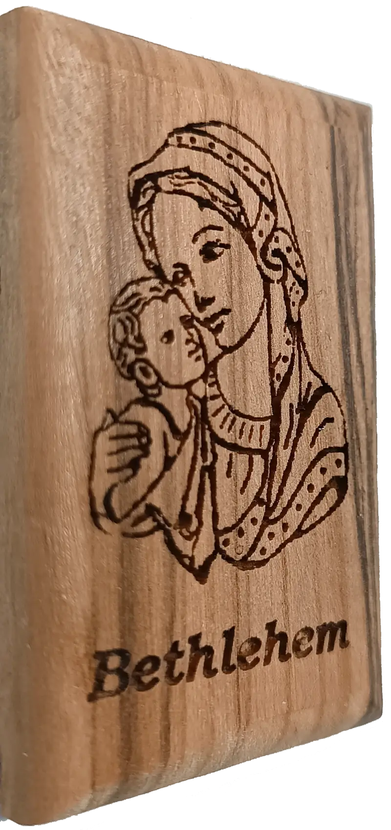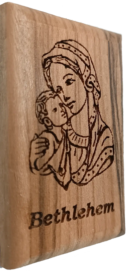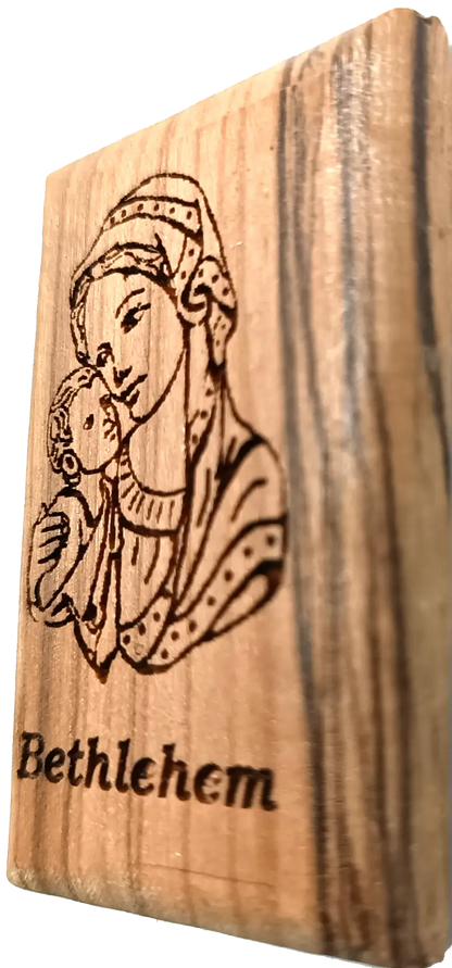 Olive Wood Magnet – Mary and Baby Jesus Scene – Bethlehem Olive Wood