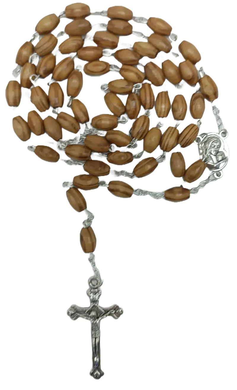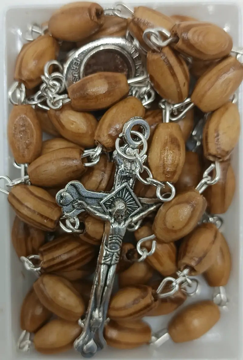 Olive Wood & Metal Rosary – Made in Bethlehem –