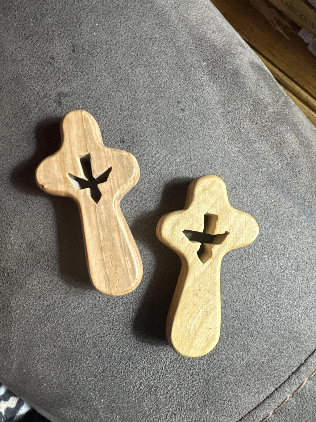 The olive wood itself comes from annual pruning of living trees near the Holy Land. Nobody's cutting a tree down to make a cross. The pruned branches would otherwise go to waste. That detail matters to me, and I think it matters to the people who buy these too.