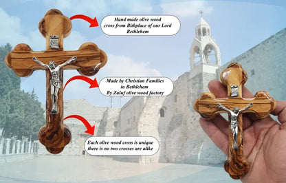 • Genuine Olive Wood Elegance : Crafted from authentic olive wood, the crucifix embodies deep Christian history and heritage .
