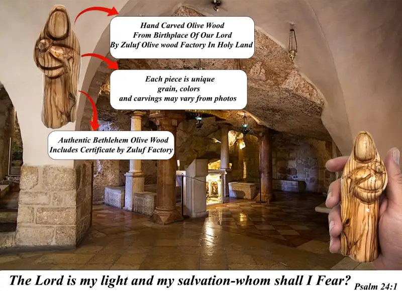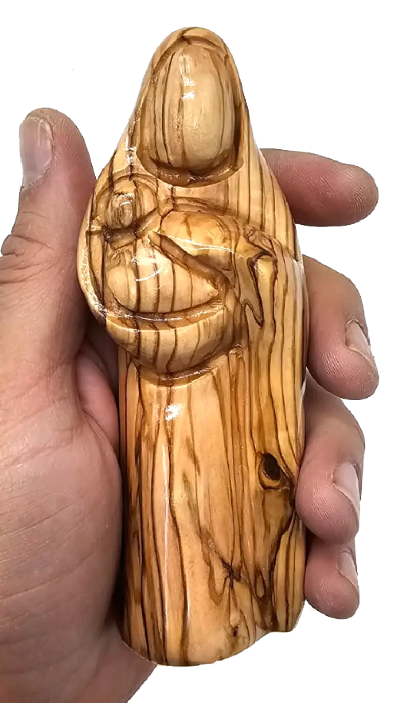 Real Olive Wood: Carved by hand from olive wood that comes straight from Bethlehem. Every statue’s got its own wood grain, so no two look exactly the same.