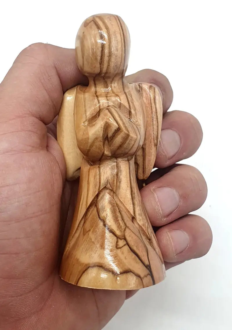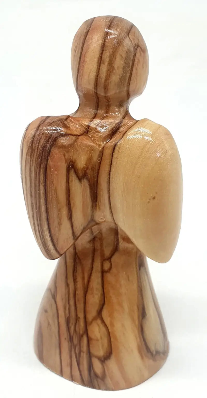 Zuluf Comforting Angel Figurine Hand Carved Olive Wood 3.6 Inch