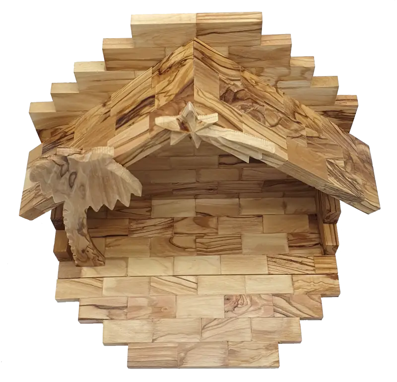Zuluf Hand-Carved Nativity Set with Bark Roof from Bethlehem