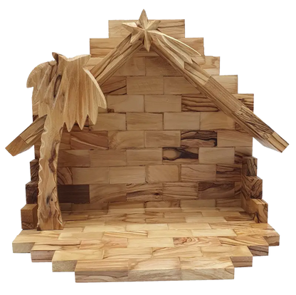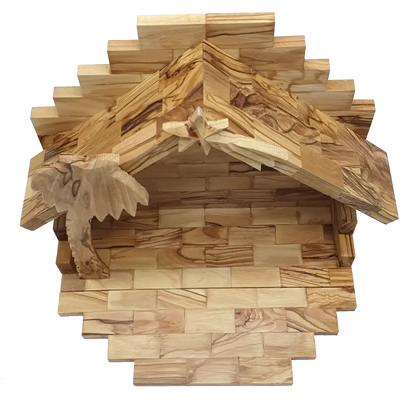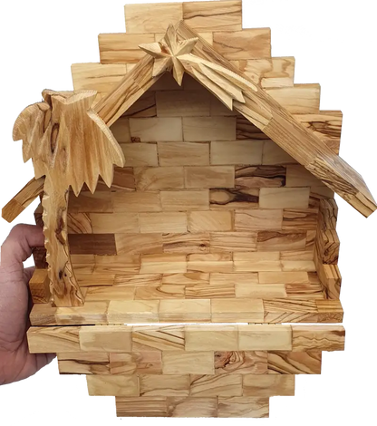 Zuluf Hand-Carved Nativity Set Scene with Authentic Bark Roof - Crafted in Bethlehem, 8.4x10.6x6.2 Inches