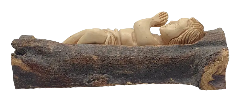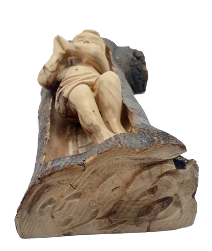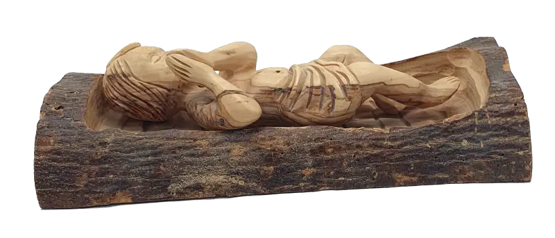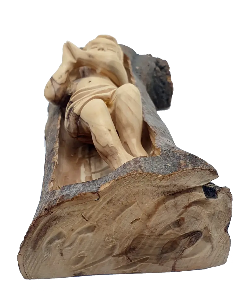 Indulge in the divine elegance of the Zuluf Handcrafted Olive Wood Baby Jesus Statue . Order now to infuse your space with the sacred beauty of this unique Nativity figurine .