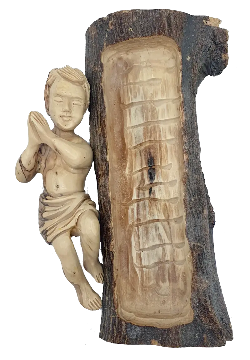 Artisan Excellence : Crafted by skilled artisans, this statue captures the intricate details of baby Jesus, showcasing the rich texture and warmth of genuine olive wood .